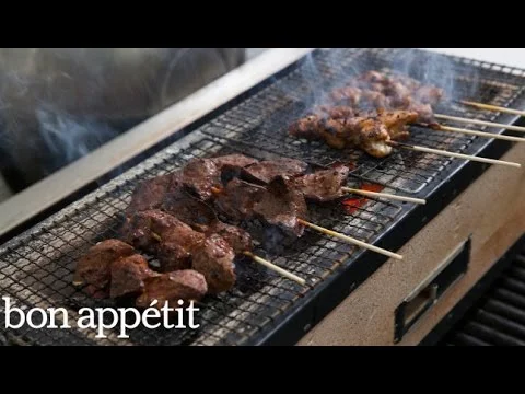 Llama Inn Chef Erik Ramirez Grills Peruvian Anticucho with Binchotan Charcoal